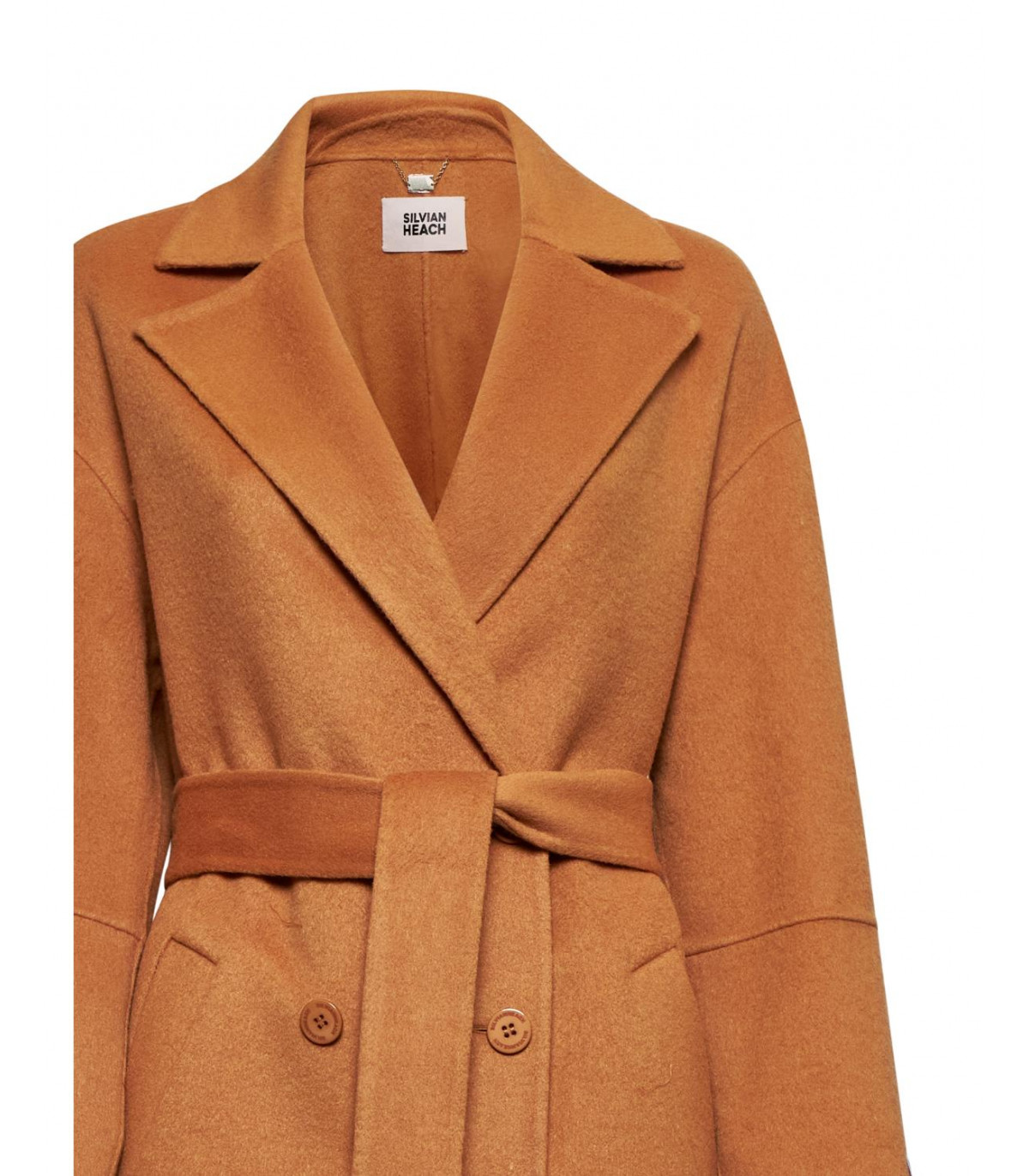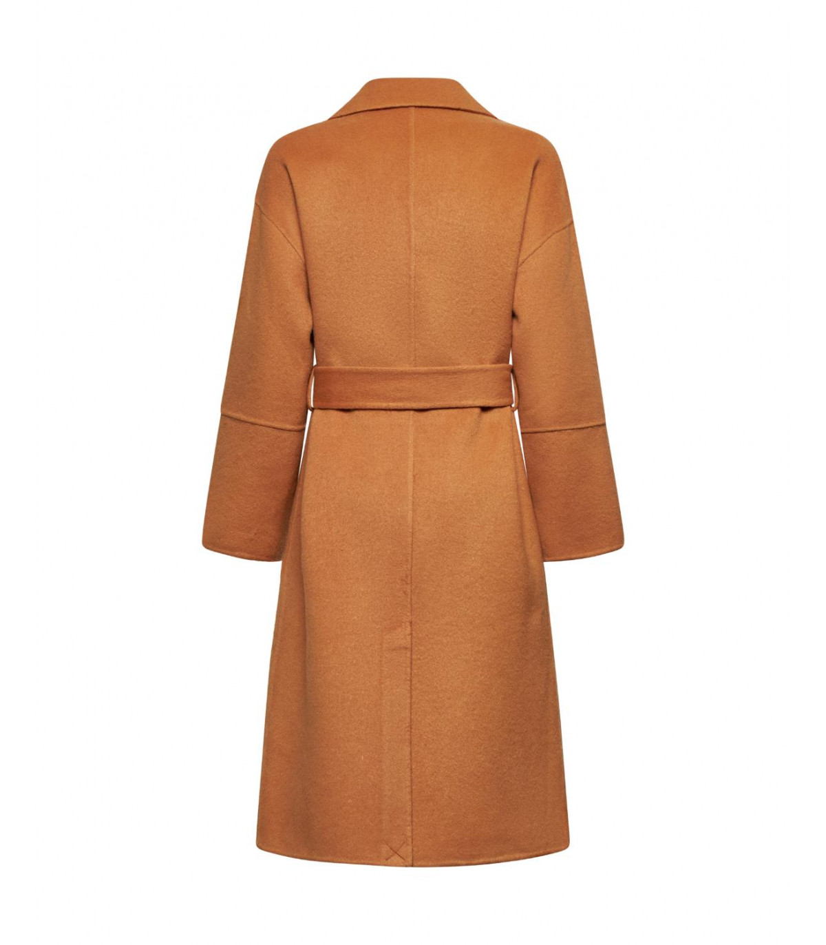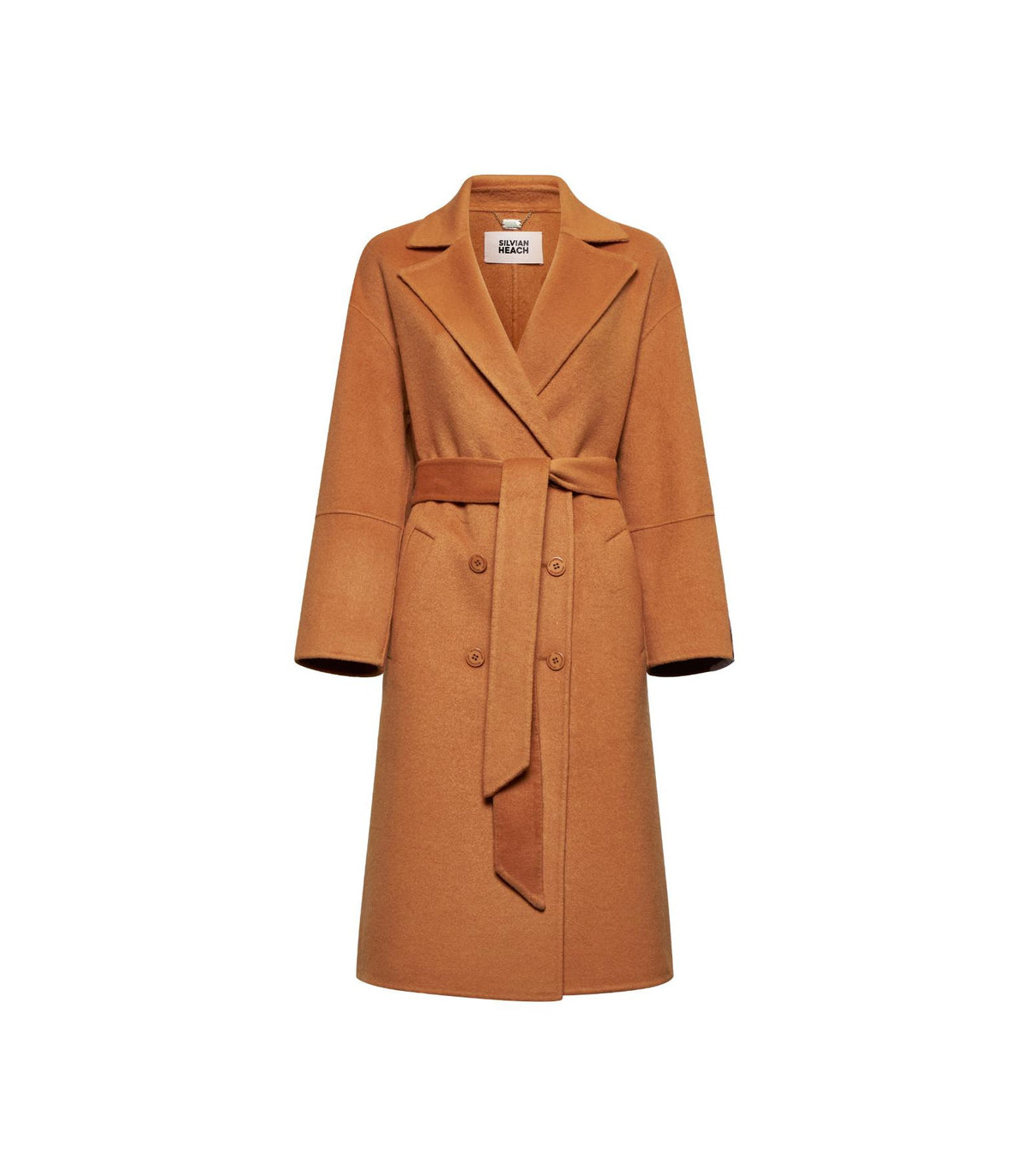 Abrigo de corte fluido, cierre cruzado y cinturón a juego. El corte holgado se ajusta a la cintura.