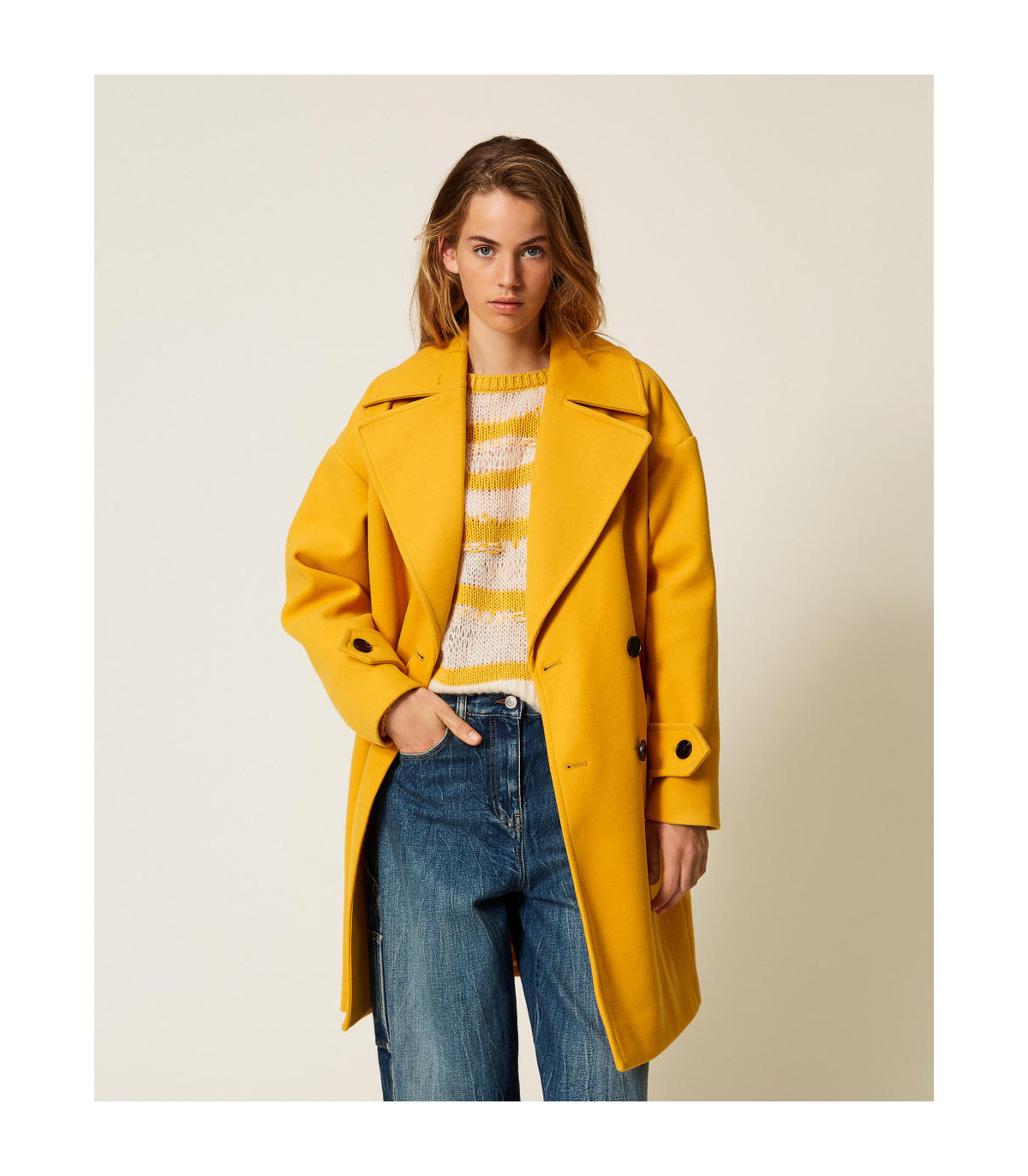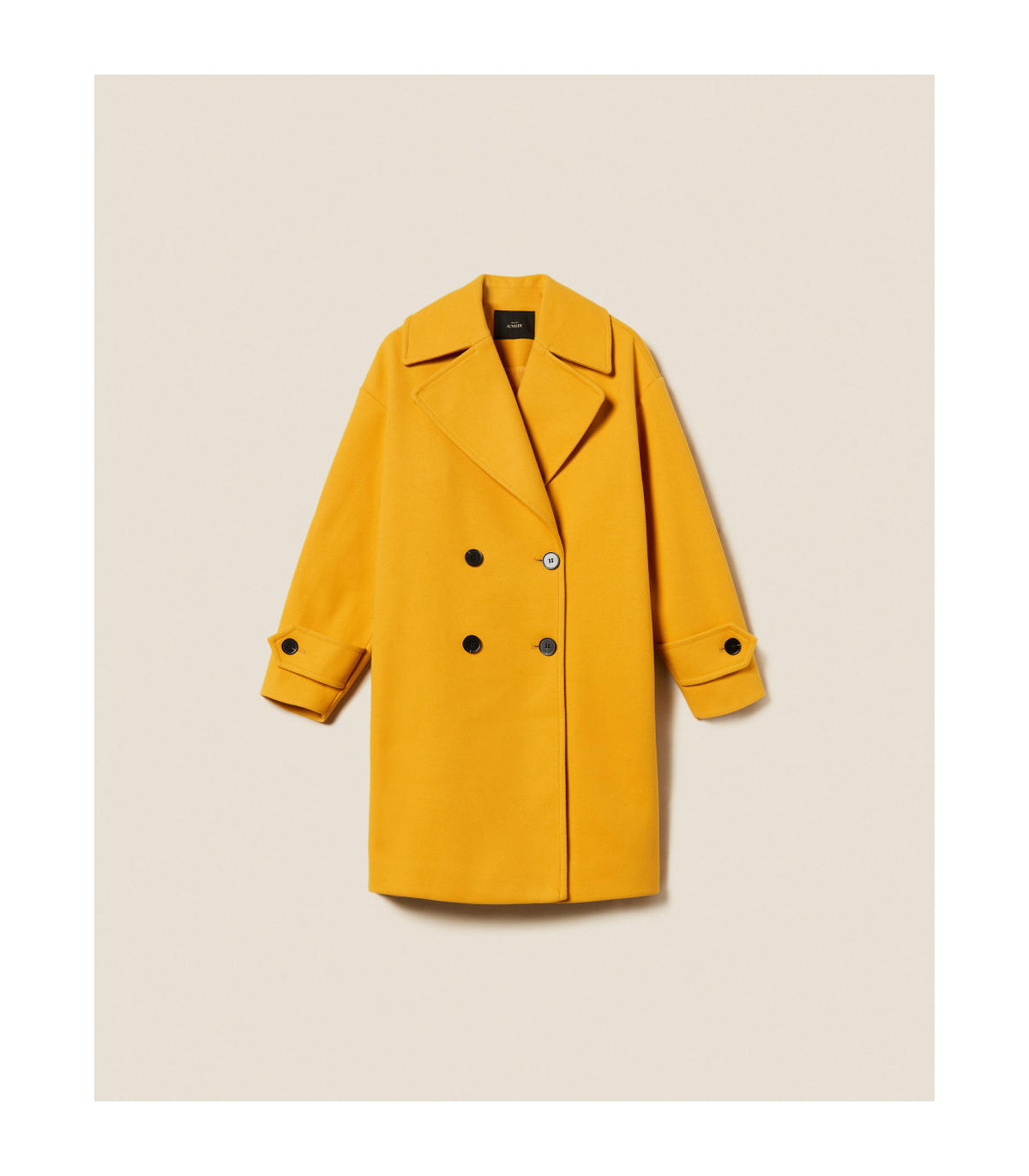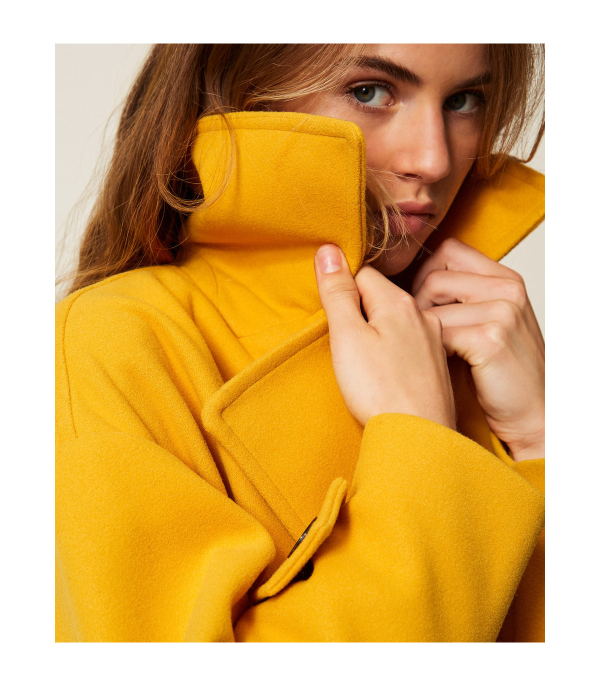 Abrigo de la colección Actitude de paño con diseño abombado y solapas anchas. Presenta un cierre de doble botonadura con botones en contraste, manga larga con alamares en el puño, bolsillos insertados en los laterales y forro interior, de corte ancho