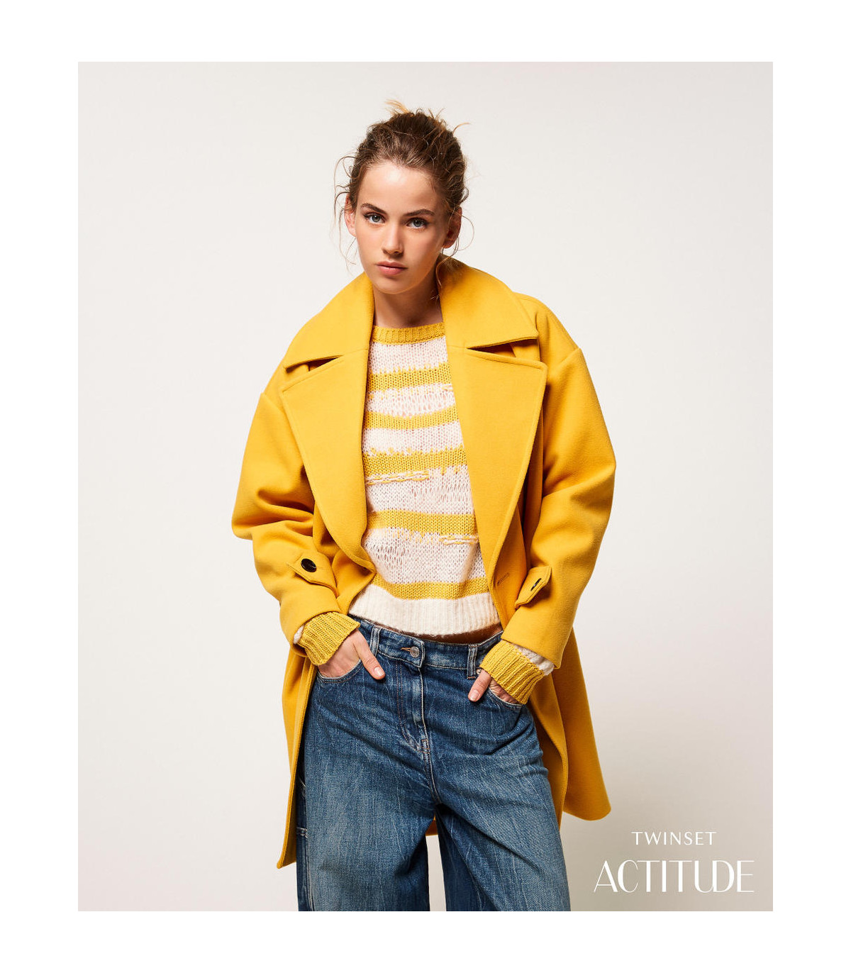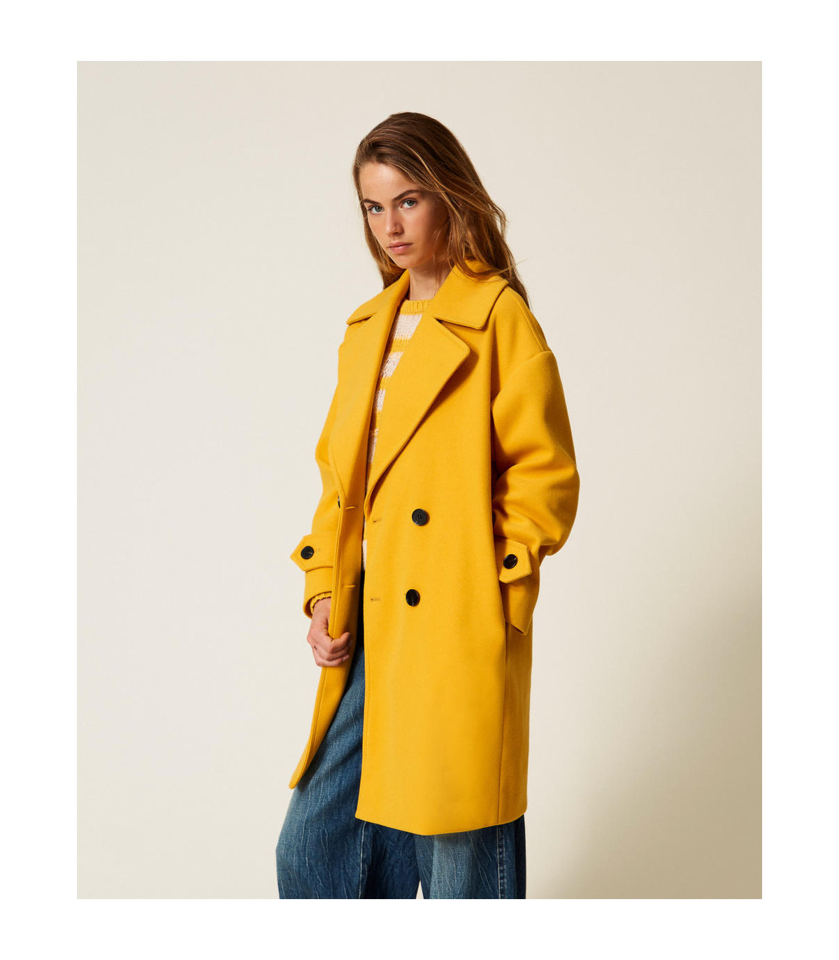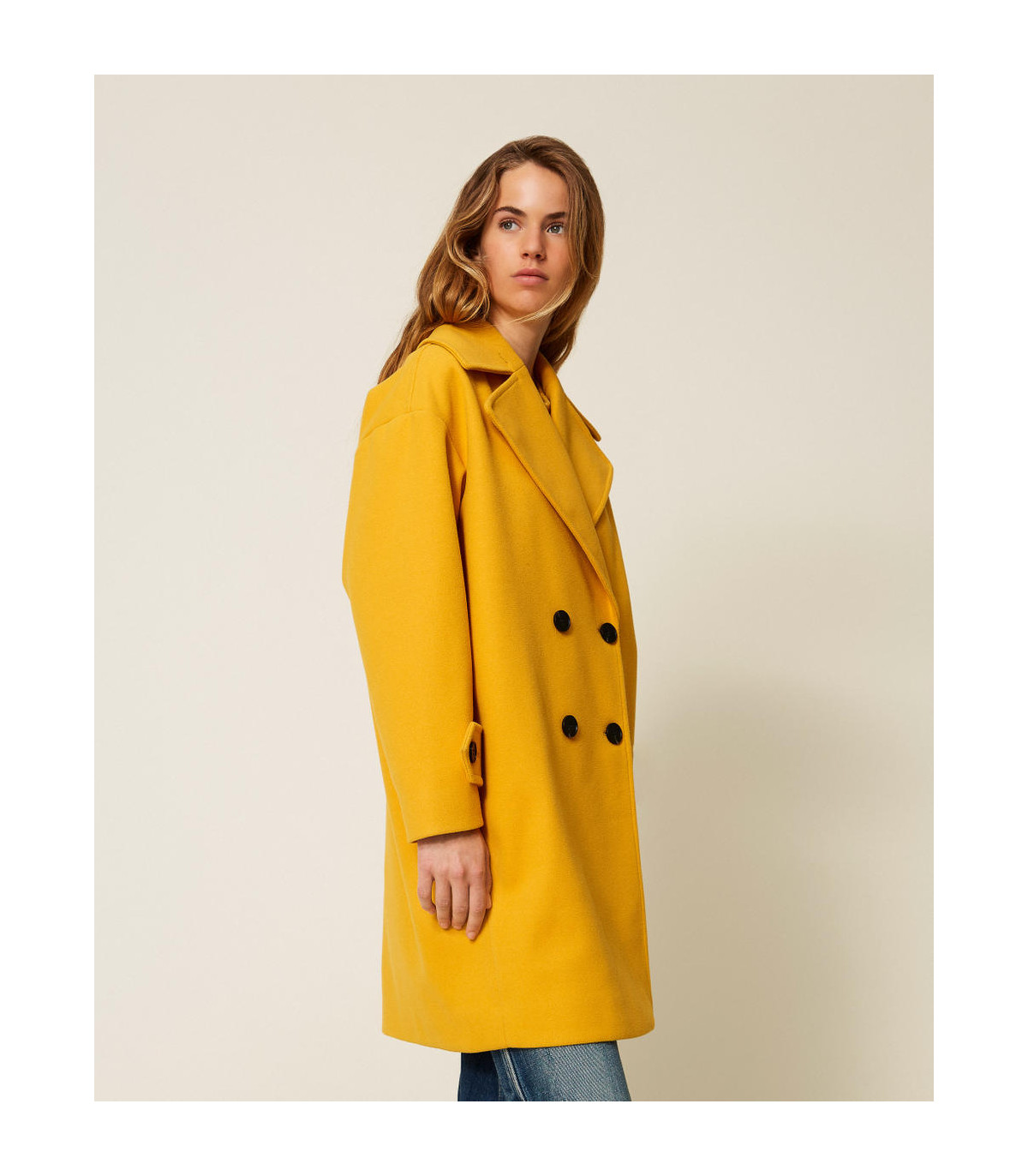 Abrigo de la colección Actitude de paño con diseño abombado y solapas anchas. Presenta un cierre de doble botonadura con botones en contraste, manga larga con alamares en el puño, bolsillos insertados en los laterales y forro interior, de corte ancho