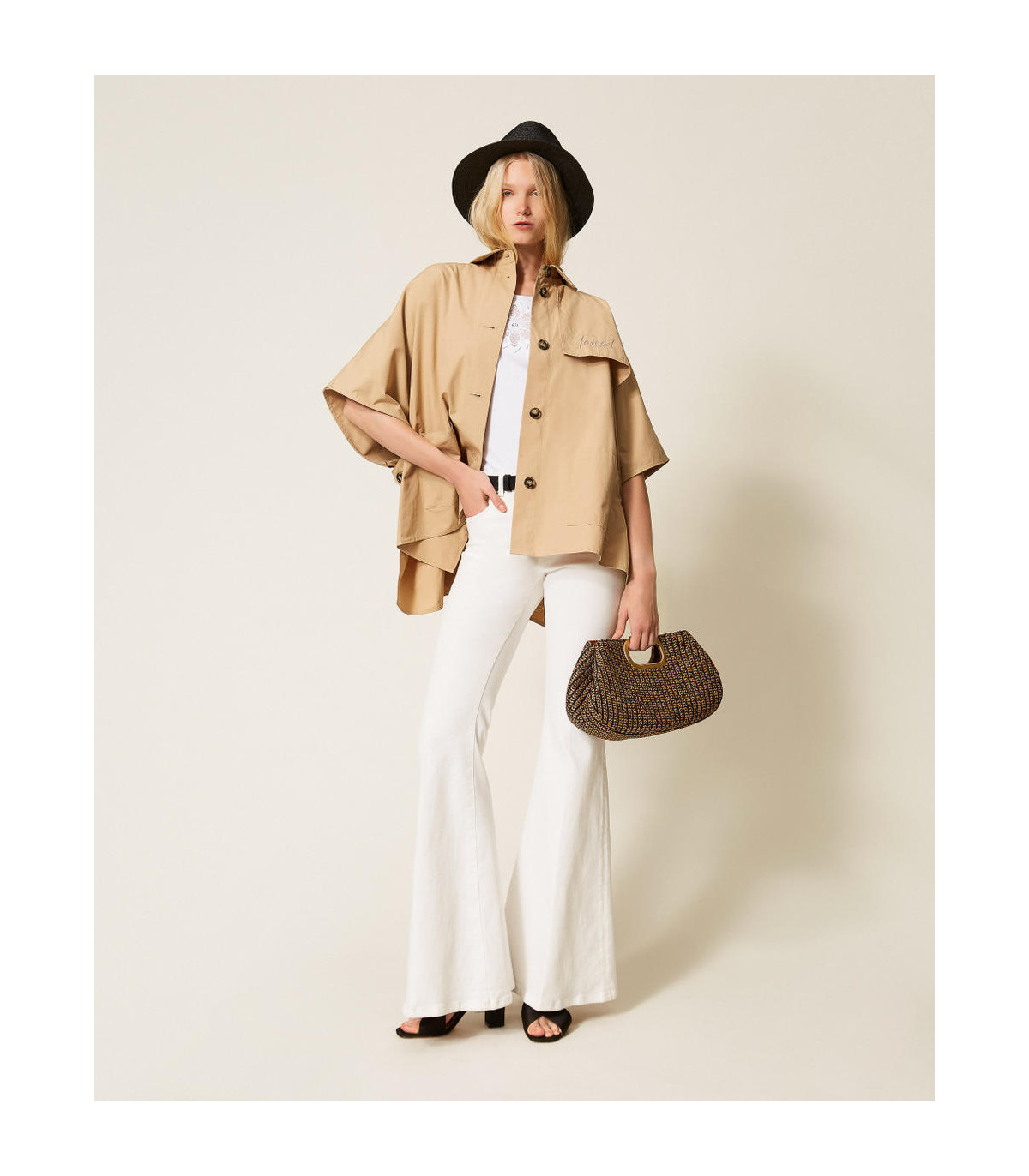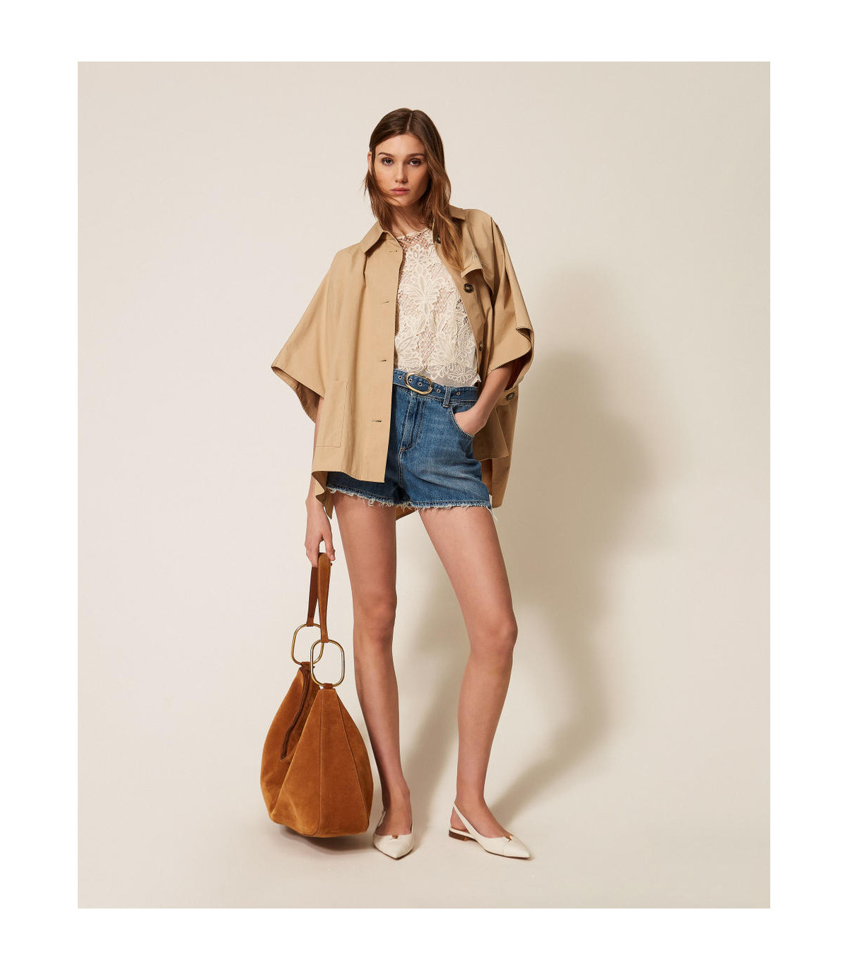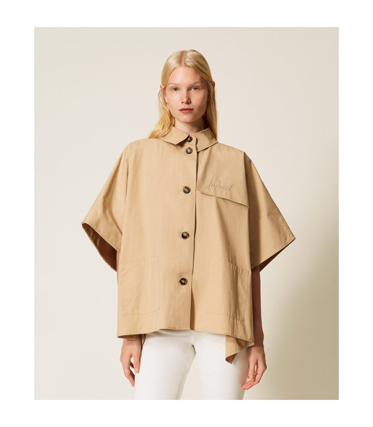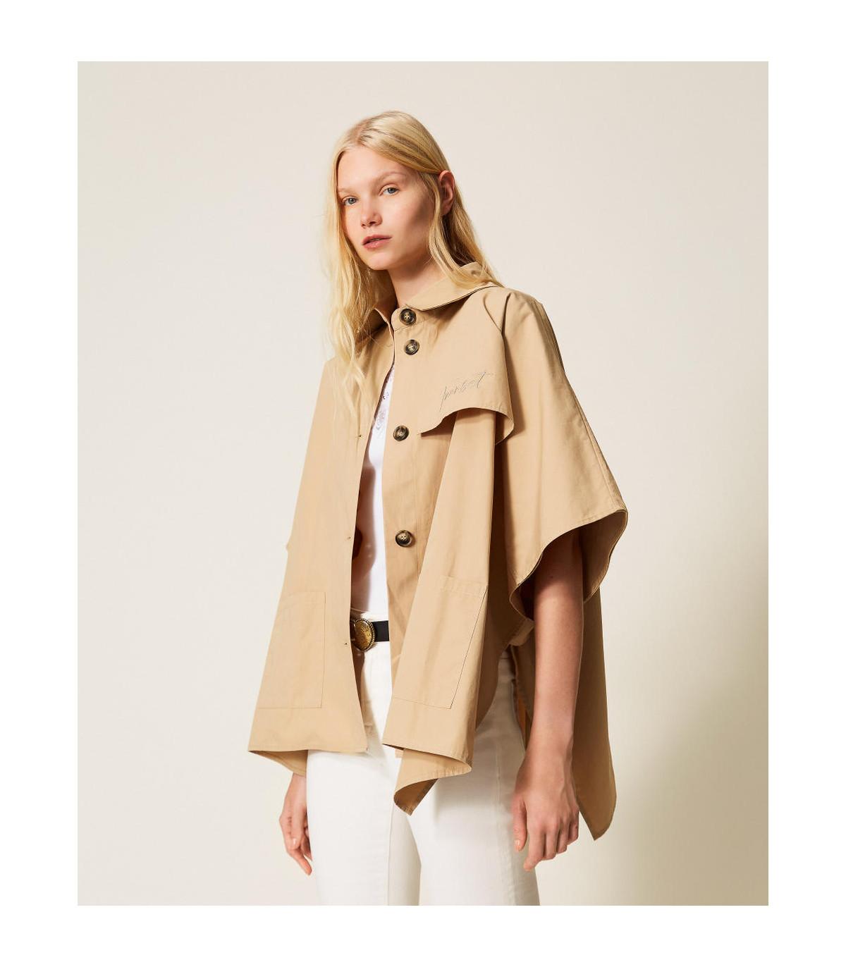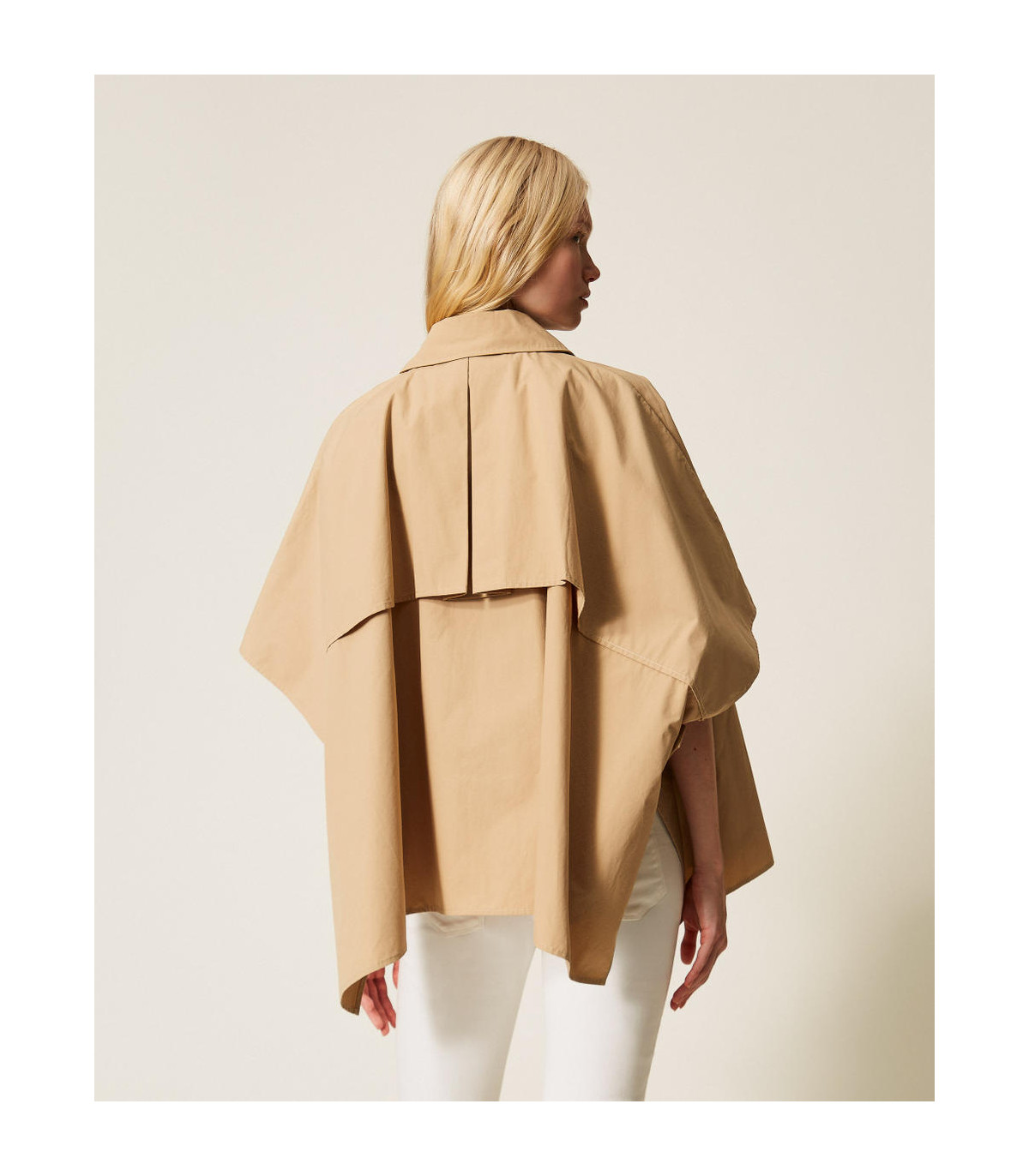Poncho con diseño de trench de gabardina de algodón. Tiene cuello camisero, cierre con botones de efecto cuerno, solapas para la lluvia en la parte delantera, bolsillos aplicados, laterales cerrados con botones y corte holgado