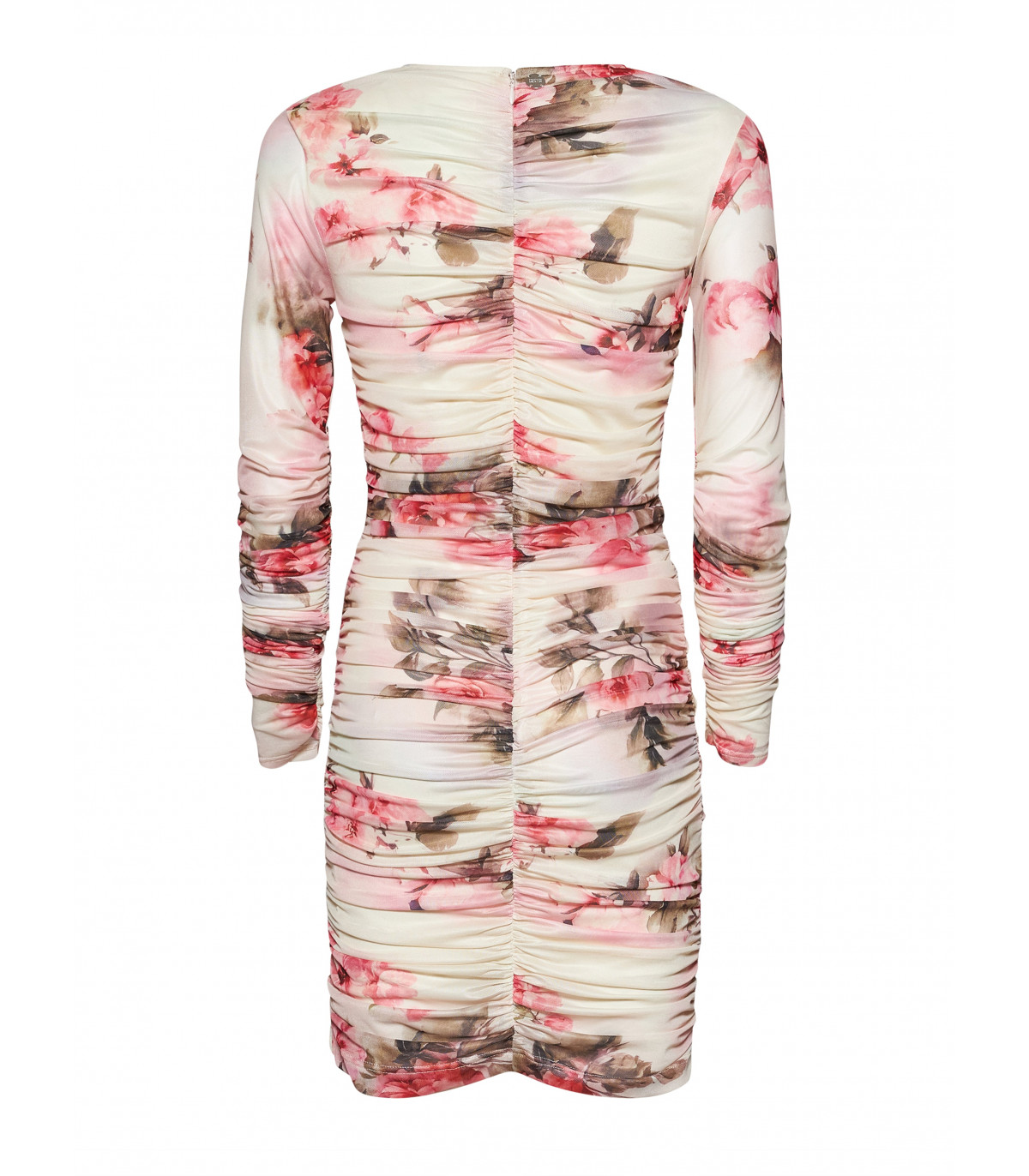 ABITO CORTO CON MOTIVO ARTISTICO E DRAPPEGGI RAFFINATI